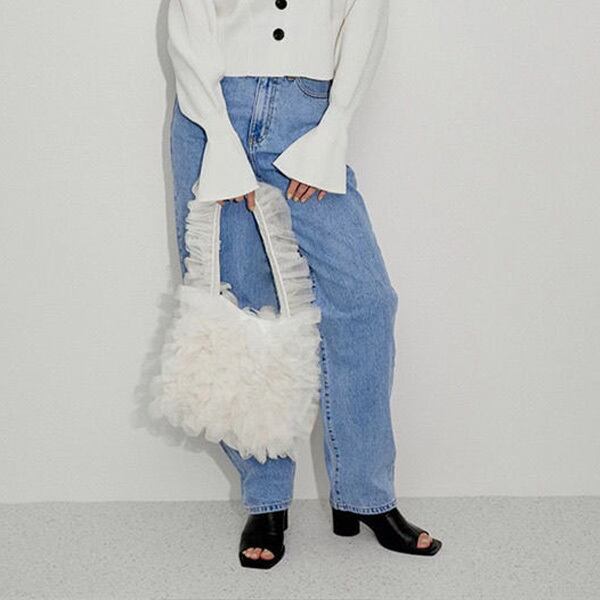 チュールフリルバック チュール フリル オーガンジー シアー バック ハンドバック トートバック ショルダーバック 手提げ メッセンジャー ワンハンドル 手持ち 2重 ギャザー