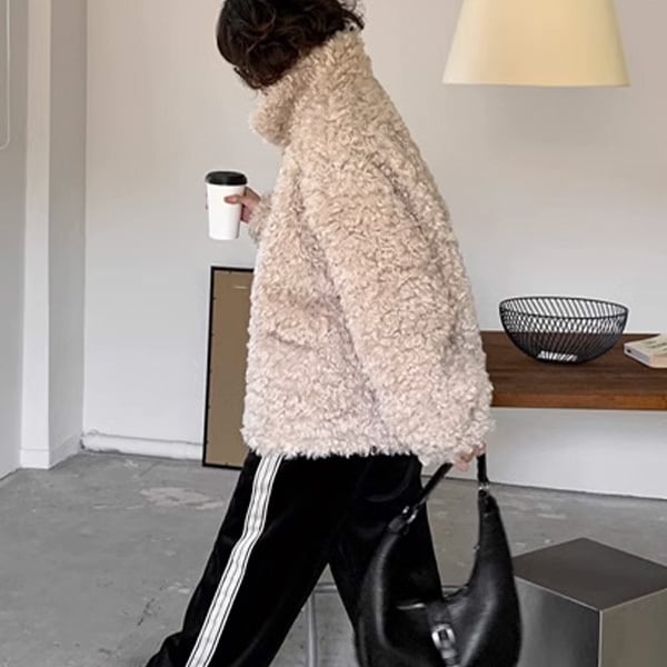 ボアジャケット ボアブルゾン プードル プードルファー コート ジャケット ブルゾン ジャンパー ショート スタンドカラー アウター あたたか 防寒 軽量 ミリタリー 保温 エコ