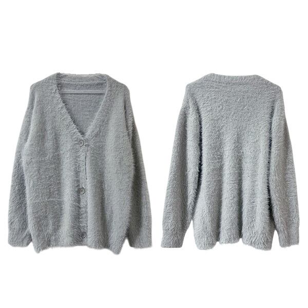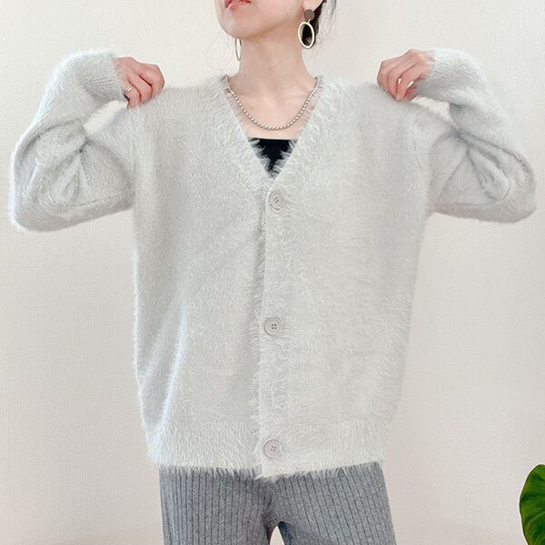 シャギーカーディガン フェザー 起毛 カーディガン Vネックカーディガン ニット セーター プルオーバー Vネック 無地 長袖 レディース ふわふわ 長袖 オーバーサイズ