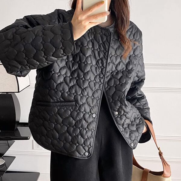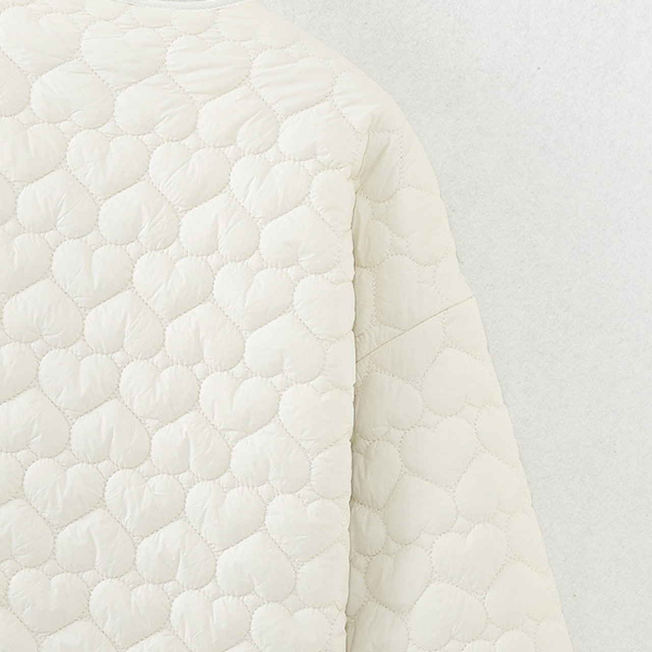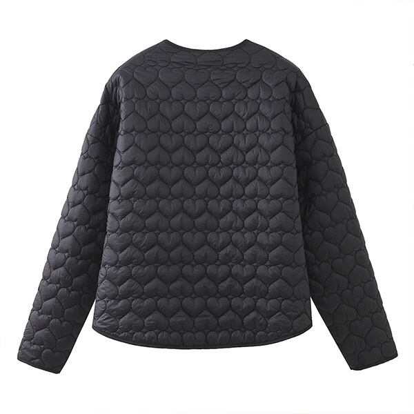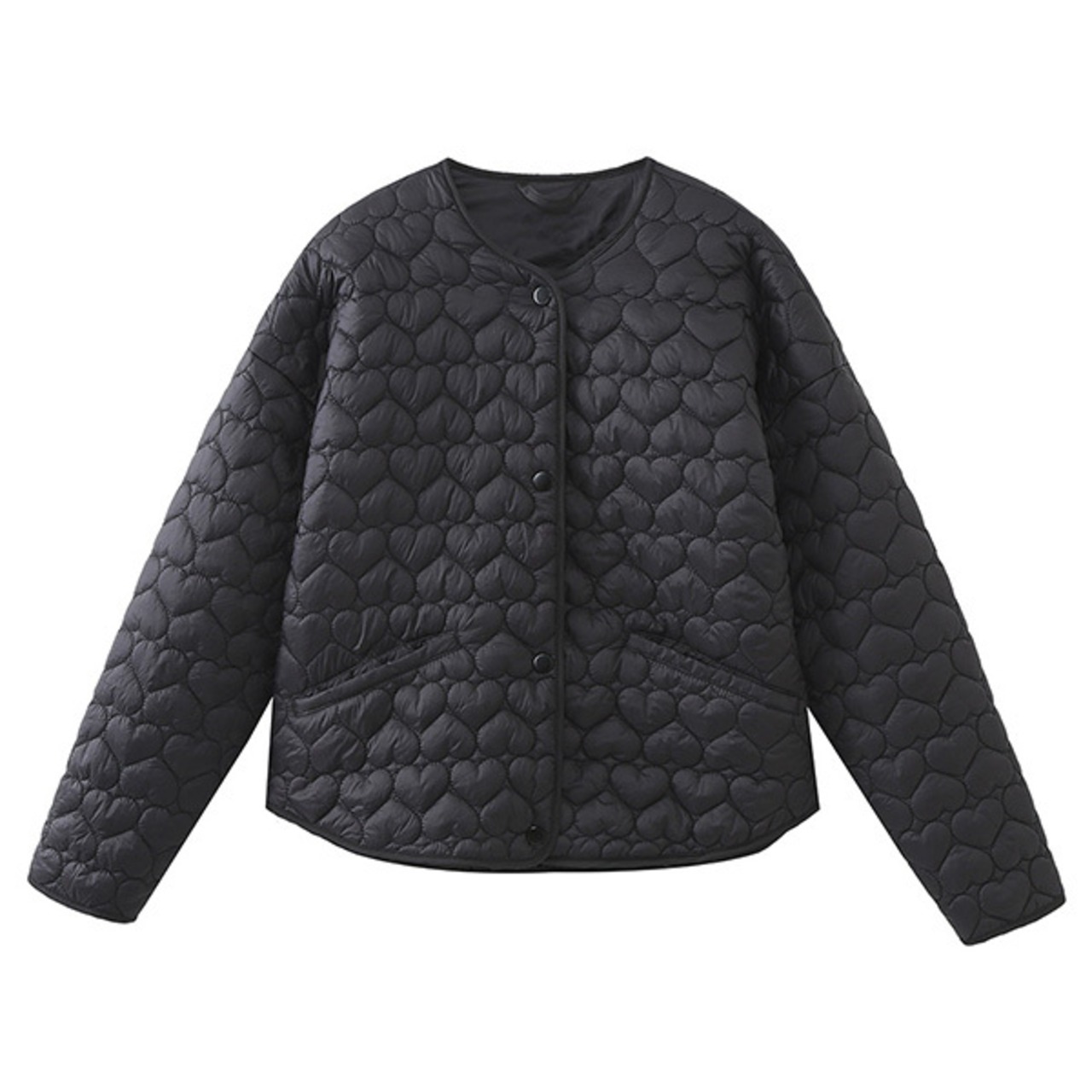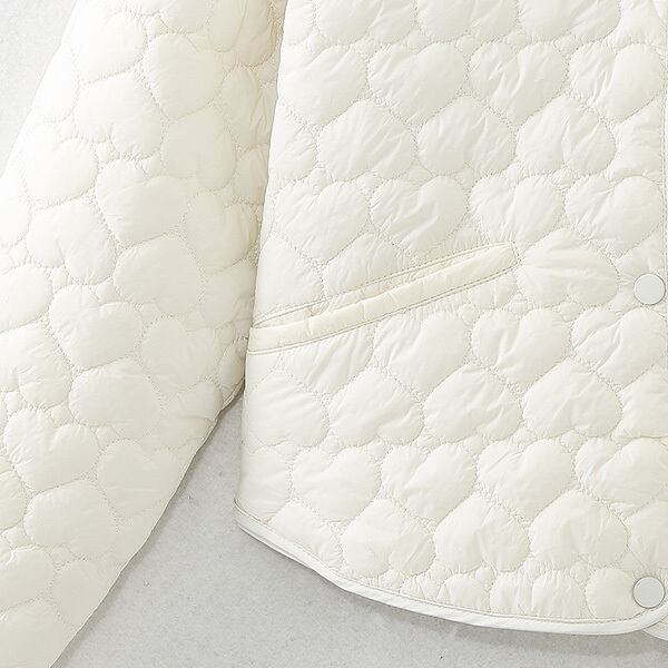 キルティングジャケット ハートキルトジャケット 中綿 キルト ノーカラージャケット キルティング ダウンジャケット アウター ハート柄 レディース 軽量 長袖 秋冬 インナーダウン 防寒 ノーカラー ブルゾン ショート丈