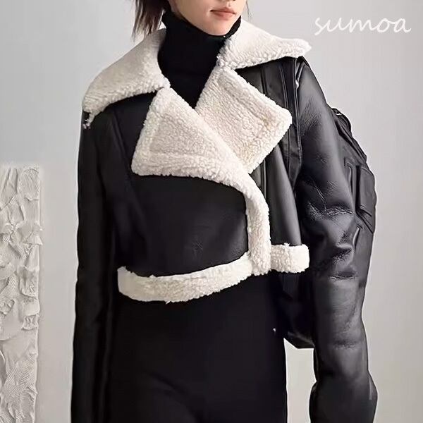 ショート丈ムートンジャケット ムスタン ボアジャケット フェイクムートン ライダース レディース ブルゾン ジャンパー カジュアルジャケット アウター 秋冬 ミリタリージャケット ショート丈 ミリタリー モッズ ボア MA-1